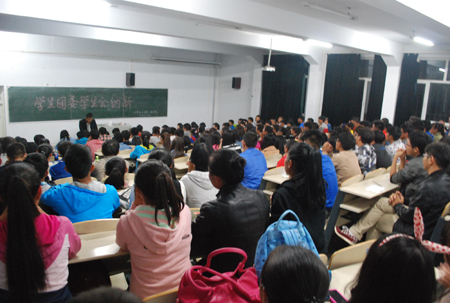 活动伊始,先由我院学生会主席介绍了本次活动的主要目的,随后团委副书记具体讲解了关于各个部门的主要职能,并希望大家能够按照自己的喜好选择适合自己的部门。在活动中,每个部门的部长对两年来的工作做了些总结,并谈论了自己的工作感想。最后,参加面试的同学陆续在前台做自我介绍,道出自己的意愿,展示自己的才华,秀出自己的风采,现场竞争异常激烈。
