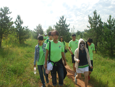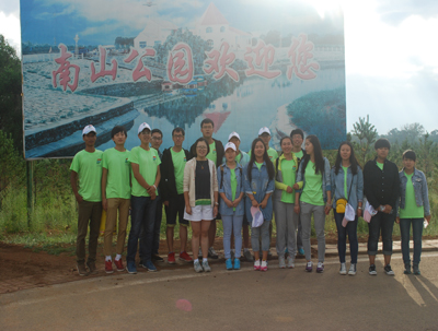(通讯员张楠)7月16日早晨7:00,一群身穿写着"内蒙古农业大学社会实践服务团队"字样的绿色半袖的大学生出现在公路上学生们情绪高涨,热情激昂的向着活动的下一个地点—右玉县南山植树造林区前进。 在漫长却伴随着同学们打闹嬉戏的路途中,庄老师不断的为同学们介绍有关南山植树造林区的情况。她提到,昔日寸草不生的小南山,如今已成为一座繁茂的森林公园。其中有右玉群众自发集资建立的一块苍松状的碑,上面镌刻着新中国成立以来17任县委书记的名字。同学们听后对此兴趣浓厚,都迫不及待地前往目的地。途中,庄老师组织同学们进行了竞走、赛跑以及真心话大冒险等多种小游戏,同学们尽管累,但也玩地不亦乐乎,场面甚是轻松愉快。