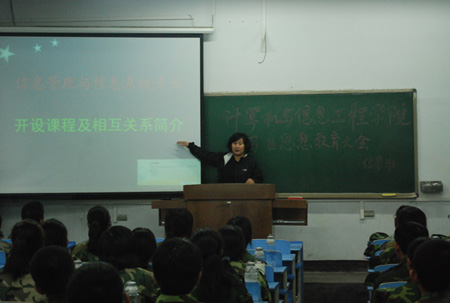 会上,各系负责老师首先就各专业的专业概况、课程内容、发展前景及就业方向等相关内容做了详细的介绍,新生们提出了内心的疑惑,老师为他们认真讲解,并展开了积极的讨论。随后,各班班主任与各班学生进行见面,询问了学生的一些情况与困惑,并为同学们介绍了军训生活及大学生活的相关注意事项,最后,与同学们讨论了一些新生所热衷的话题。