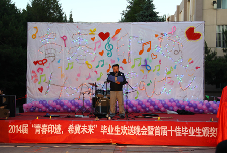 计算机院于6月9日晚7:40在计算机院广场举办了主题为“青春印记 希冀未来”的2014届毕业生欢送晚会暨“十佳毕业生”颁奖晚会。校学生处副处长侯振虎,计算机院党政领导、教师、学生参加了本场晚会。