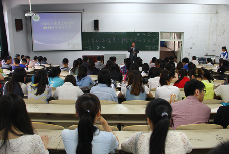 (通讯员 王越)5月25日上午,计算机与信息工程学院举办了2014届毕业生教育大会暨就业洽谈会。招生就业处、学生处、宣传部及计算机与信息工程学院相关负责人出席洽谈会。