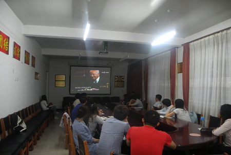 同学们观看视频现场