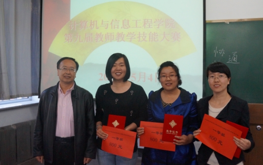 值此“五四青年节”到来之际, 我院按照《内蒙古农业大学“教学质量管理年”实施方案》、《内蒙古农业大学教师教学能力提升计划》以及《计算机与信息工程学院党的群众路线教育实践活动整改方案》等要求,为进一步提高我院教师教学能力、加强青年教师业务水平,5月4日下午,学院精心筹备和组织了“计算机与信息工程学院第九届教师教学技能大赛”,大赛评委由内蒙古农业大学李义禄教授、教学督导员王耀强教授以及我院薛河儒、周根宝、付学良教授担任。