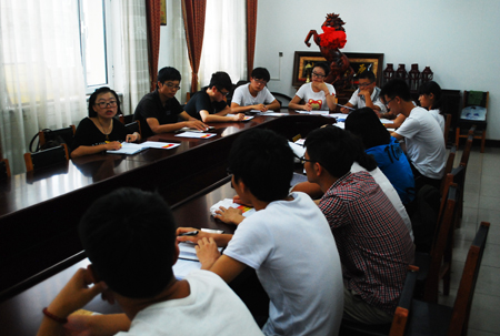 (通讯员 李海霞)8月14日下午4:30,计算机院在学院二楼会议室召开了“重走红色印记,点燃我的‘中国梦’”出征预备会,学办老师丛一与其余参加“重走红色印记,点燃我的‘中国梦’”活动的同学共同参加了本次会议,分团委老师庄霞主持了此次会议。