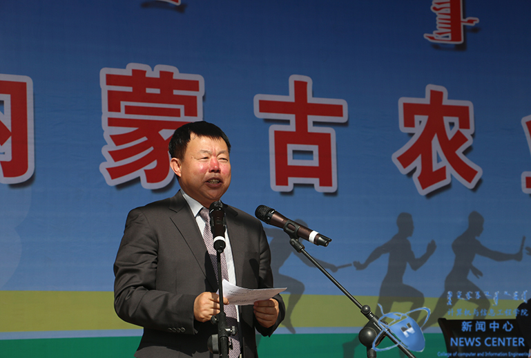 运动员代表入场后,我校副校长刘廷玺宣布运动会正式开始,并举行升旗仪式。随后,我校组委会副主任委员、校党委副书记黄龙海为运动会致开幕词。黄书记首先对本次运动会的顺利召开表示祝贺,并对我校师生提出建议,要求全体师生提高对体育运动的重视程度,走出舒适区,以积极拼搏的心态,在钻研学习的同时锤炼个人意志,拥有健康的体魄,同时希望运动员们顽强拼搏,团结协作,展现我校学子昂扬进取的青春风采。